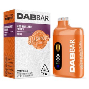 Disposable | IndicaVAPE- DABBAR CLASSICS 2.0 DISTILLATE MOONWALKER PURPS 1G87.38% THC0.21% CBDDabwoods$38.001 g